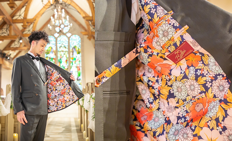 新郎様のタキシード、フロックコート、ご親族様のタキシード、デレクターズスーツ、披露宴に出席される際のスーツなど大事な日にお召になる一着こそオーダーが最適です。 レンタルだとどうしてもサイズ感が… 一度だけで代金がもったいない… といった不満を払拭できます。 レンタルとほぼ同じ価格でオンリーワンのデザインを着ることができます。もちろん、サイズ等も制限もありません。 また挙式後に日常でお使いなれるスーツにリメイクさせて頂きます。 最近では新郎様も衣装にこだわる方が増えており、結婚式には自分だけのオーダーした衣装をお持ち込みになることがスタンダードになりつつあります。 晴れの舞台での一着こそ身体にフィットしたオーダーが最高の演出をします。