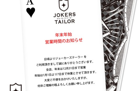 日頃よりジョーカーズテーラーをご利用いただきまして誠にありがとうございます。